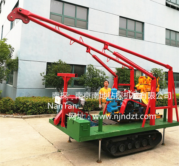 一、適用范圍:該履帶底盤承載重量達(dá)4T,可以裝載各種小型鉆機,如:XY-1-1、XY-1、XY-1A、XY-1A(YJ)、XY-1A-4、XY-1A-5、XY-1B、XY-200、XY-200(YJ)、XY-200-1、XY-200-2、XY-200A、XY-200AYJ)、XY-200A-1、XY-200A-2、XY-200B、GXY-1、GXY-1A、GXY-1B、GXY-1C、GXY-2K、GXY-2Q、GXY-200B、GYQ-200、GYQ-200A、GXY-2C、GK180、KD100-4、KD150等,并可同時裝載BW160、BW160A、BW200或BW200A型泥漿泵,具有液壓自動起落鉆塔、行走方便等特點,廣泛適用于公路、鐵路、水電、橋梁、壩基等的工程地質(zhì)勘察、地質(zhì)巖芯鉆探、物理勘察、小型灌漿孔、爆破孔、水井孔和空調(diào)孔的鉆進(jìn)??稍诤?、河灘、沙地、水田等惡劣環(huán)境開展靜探作業(yè),結(jié)冰道路仍可行走。